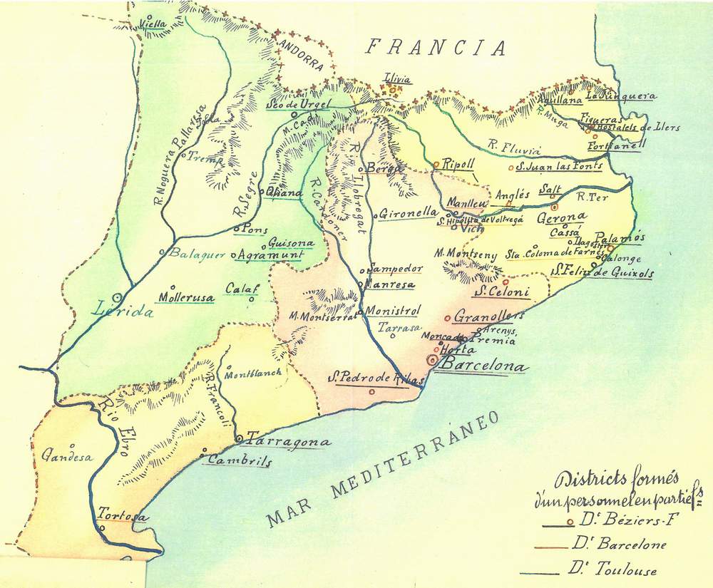 Ces 5 districts françaiçs ont subi la fermeture de quelques 180 maisons d’école ou de formation entre 1904 et 1909. La synergie avec les districts de Madrid et de Barcelone permet une dynamique de nouvelles fondations dont environ 80 oeuvres franco-espagnoles.